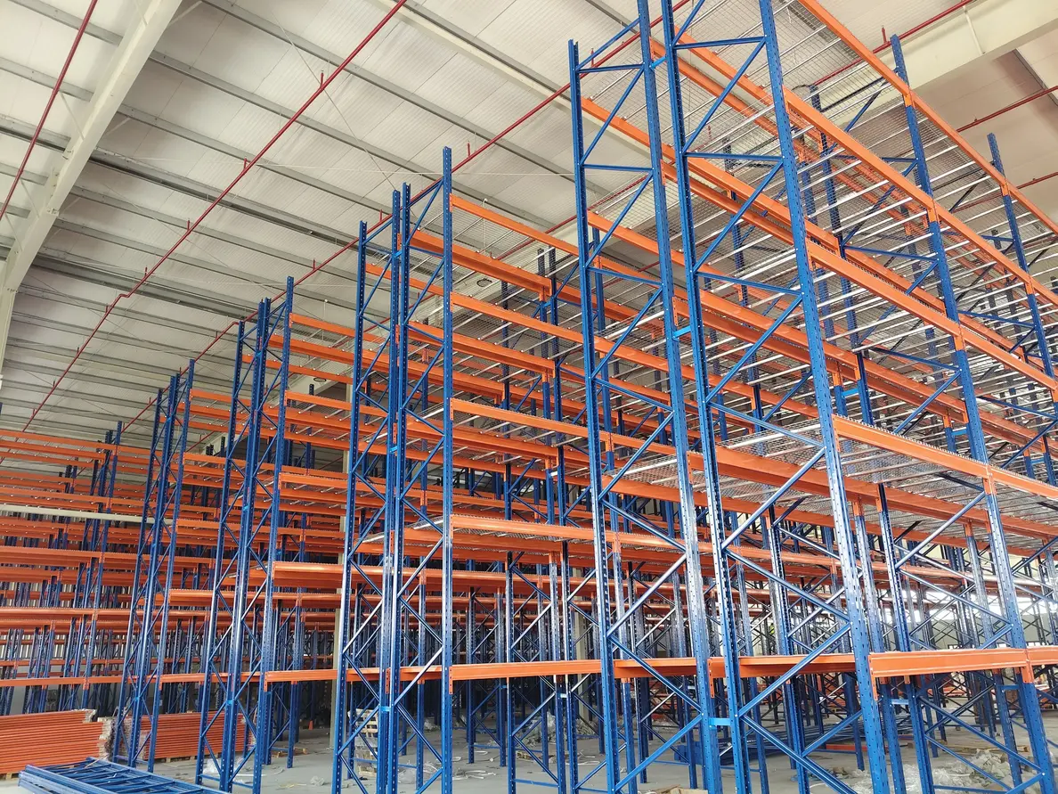 Warehouse racking is a structured system of metal frames and shelves designed to store goods typically on pallets across multiple vertical levels and horizontal rows, maximizing storage capacity and ensuring organized, efficient access in warehouses, distribution centers, and factories.